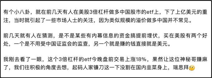 今天YINN登上了雪球热搜第一。YINN是一支美股的结构型基金代码,主题是3倍杠杆做多富时中国50指数。大概在11月29日至12月5日,有神秘资金买入了2.25亿美元的YINN和CHA ...
