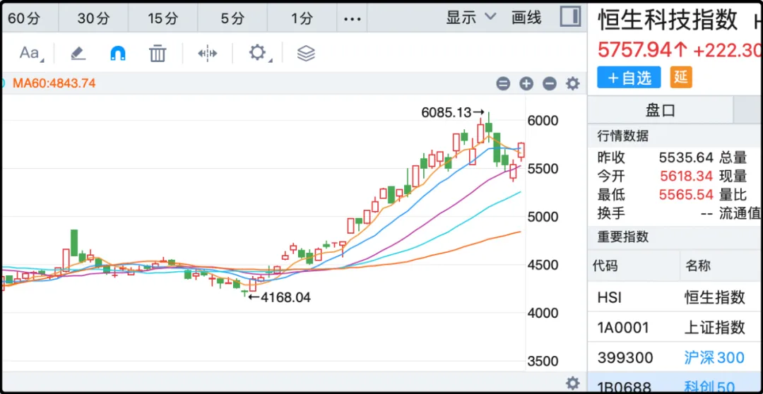 今天科技板块的热度爆表了,恒生科技指数大涨5.4%,收盘创本轮行情以来新高。带动香港恒生指数上涨3.3%,也同步刷新了本轮行情新高。境内a股也是科技热席卷,今天涨幅 ...